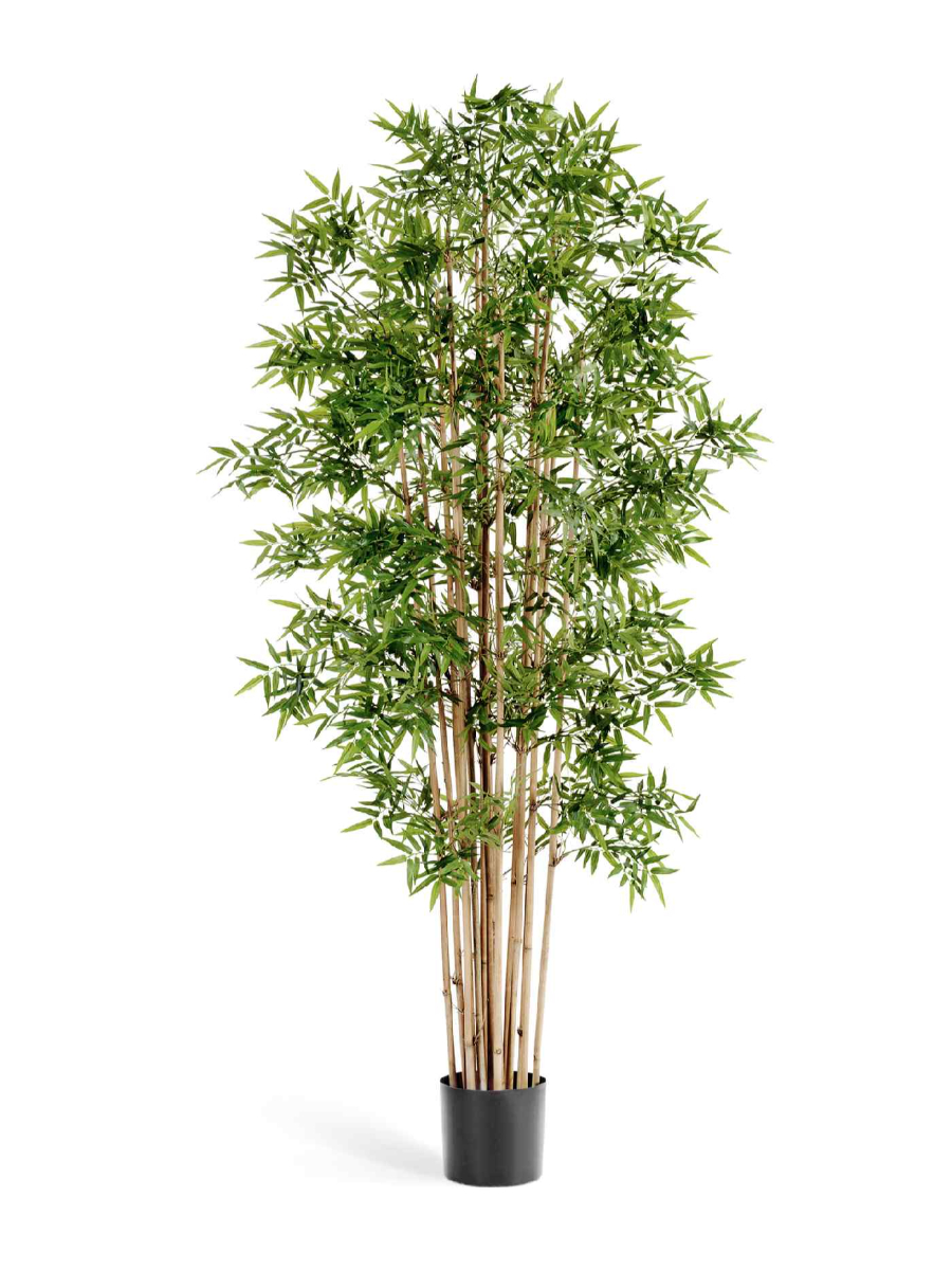 Декоративное дерево выполнено из натурального бамбука, полистирола и высокотехнологичного пластика. Благодаря этому оно выглядит максимально реалистично: тонкие стебли и густая листва в натуральном зелёном цвете создают впечатление настоящего живого растения. Такое интерьерное дерево легко впишется в любой стиль — от минимализма до классики.