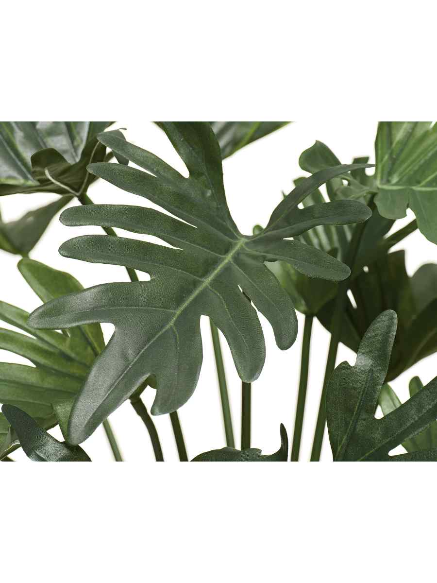 Филодендрон Ксанаду отличается густой зелёной листвой с красивыми рассечёнными листьями. Благодаря использованию полистирола и высокотехнологичного пластика удалось добиться максимально натурального оттенка зелени и реалистичной текстуры. Даже вблизи отличить это интерьерное растение от настоящего практически невозможно.