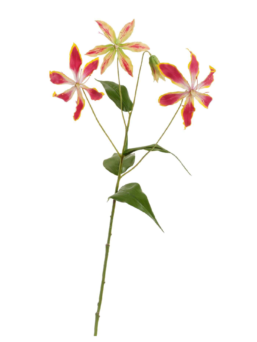 Искусственные цветы Глориоза ветка тёмно-розовая с жёлтым 3цв 1бут, Treez 30.0617206