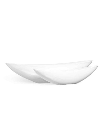 Кашпо напольное для цветов, TREEZ Effectory Gloss, Ваза лодка, керамический горшок, Белый гланцевый лак, 20×37 см, л, для интерьера, для улицы