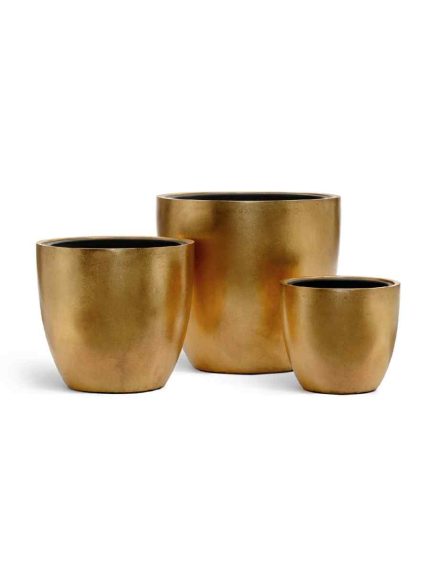 Кашпо напольное для цветов, TREEZ Effectory Metal, конус, керамический горшок, сусальное золото, 37×40 см, 45853 л, для интерьера, для улицы