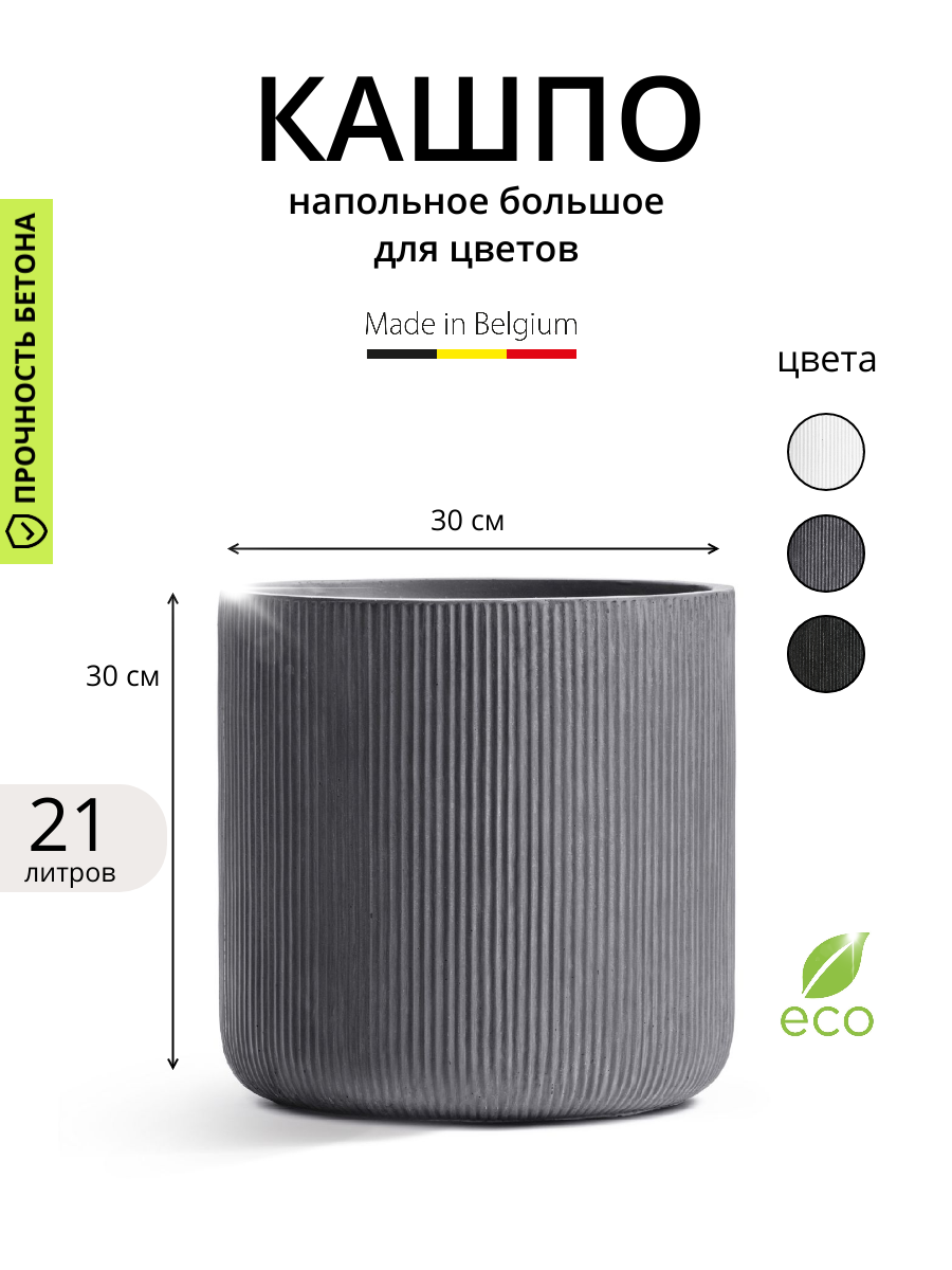 Кашпо напольное для цветов, TREEZ ERGO Jet, цилиндр, керамический горшок, Дымчато-серый бетон, 30×30 см, 21 л, для интерьера, для улицы