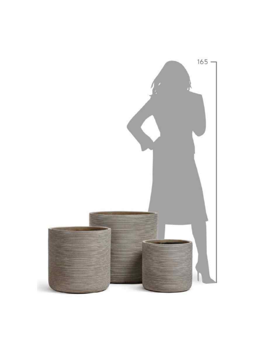 Кашпо напольное для цветов, TREEZ ERGO Hard Rock, цилиндр, керамический горшок, Песок серый беж, 57×55 см, 130 л, для интерьера, для улицы