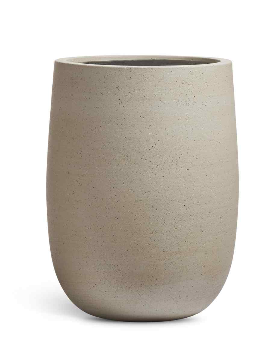 Кашпо напольное для цветов, TREEZ ERGO Hard Rock, цилиндр, керамический горшок, Песок серый беж, 57×55 см, 130 л, для интерьера, для улицы
