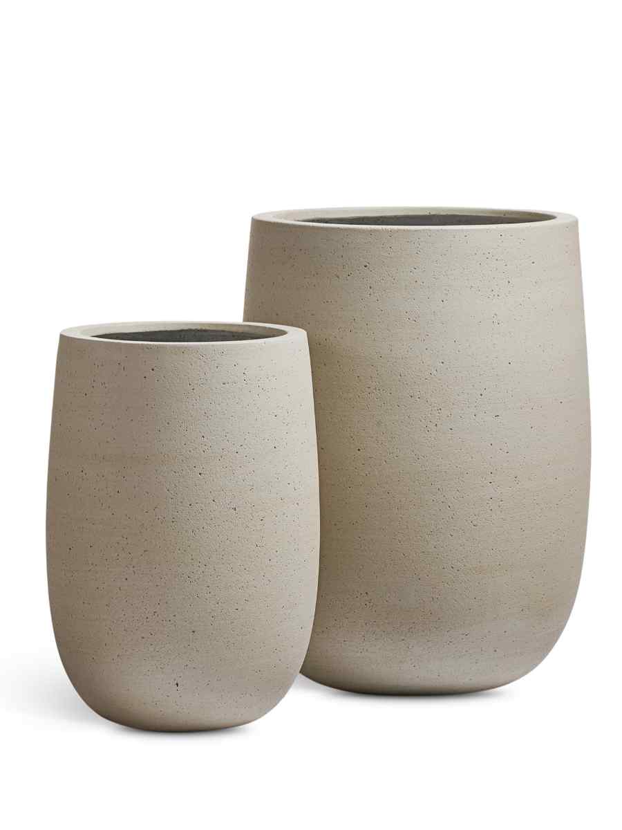 Кашпо напольное для цветов, TREEZ ERGO Fine rock, округлая чаша, керамический горшок, белый песок , 68×44 см, 80 л, для интерьера, для улицы