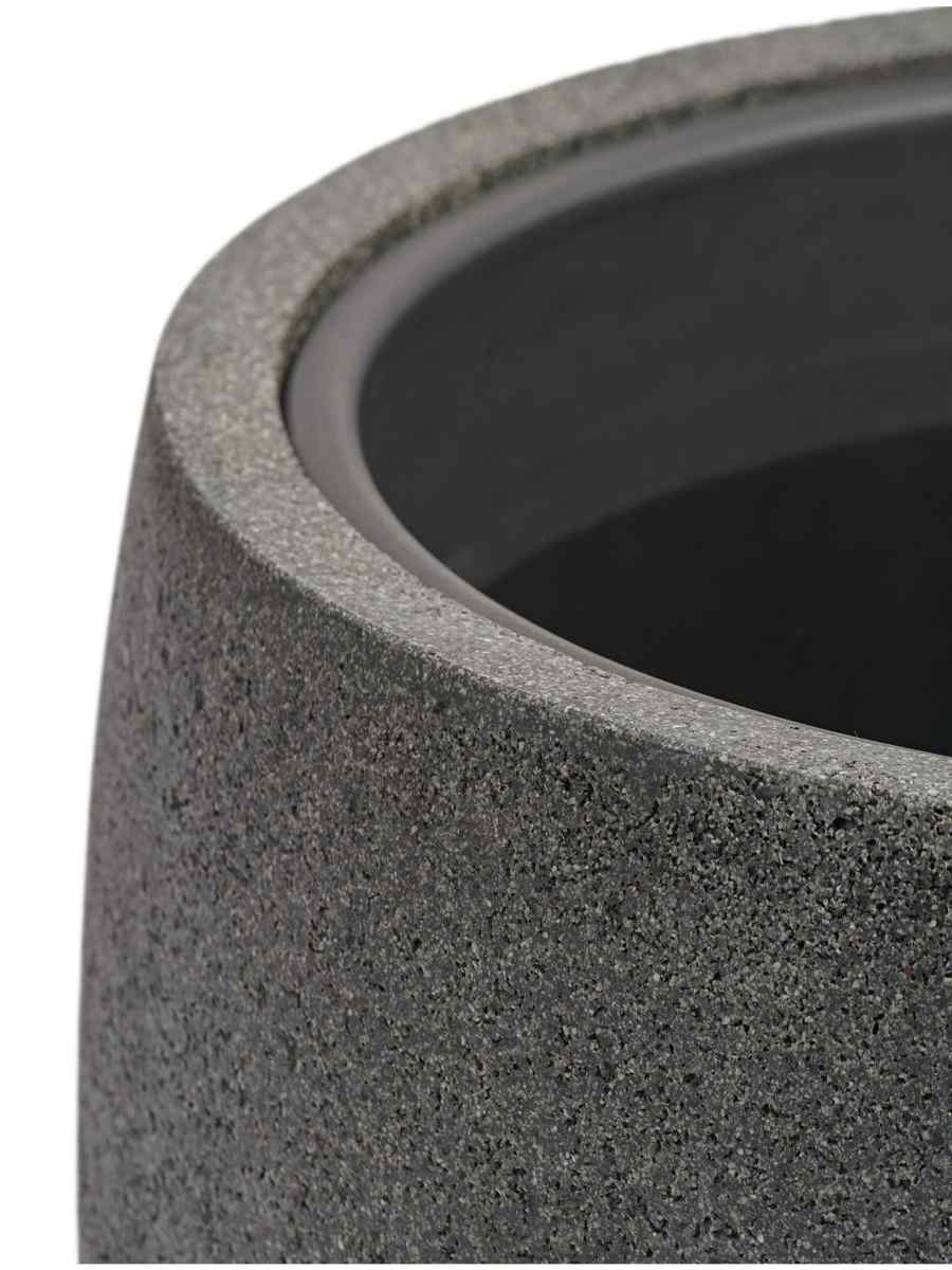 Кашпо напольное для цветов, TREEZ Effectory Stone, чаша, керамический горшок, тёмно-серый камень, 34×40 см, 37/15 л, для интерьера, для улицы