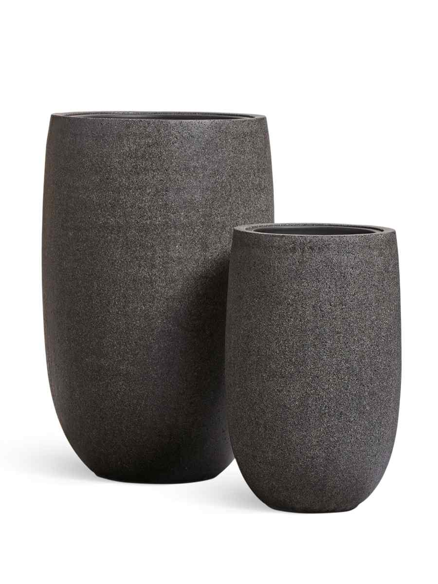 Кашпо напольное для цветов, TREEZ ERGO Hard Rock, цилиндр, керамический горшок, Чёрный песок, 61×41 см, 76 л, для интерьера, для улицы