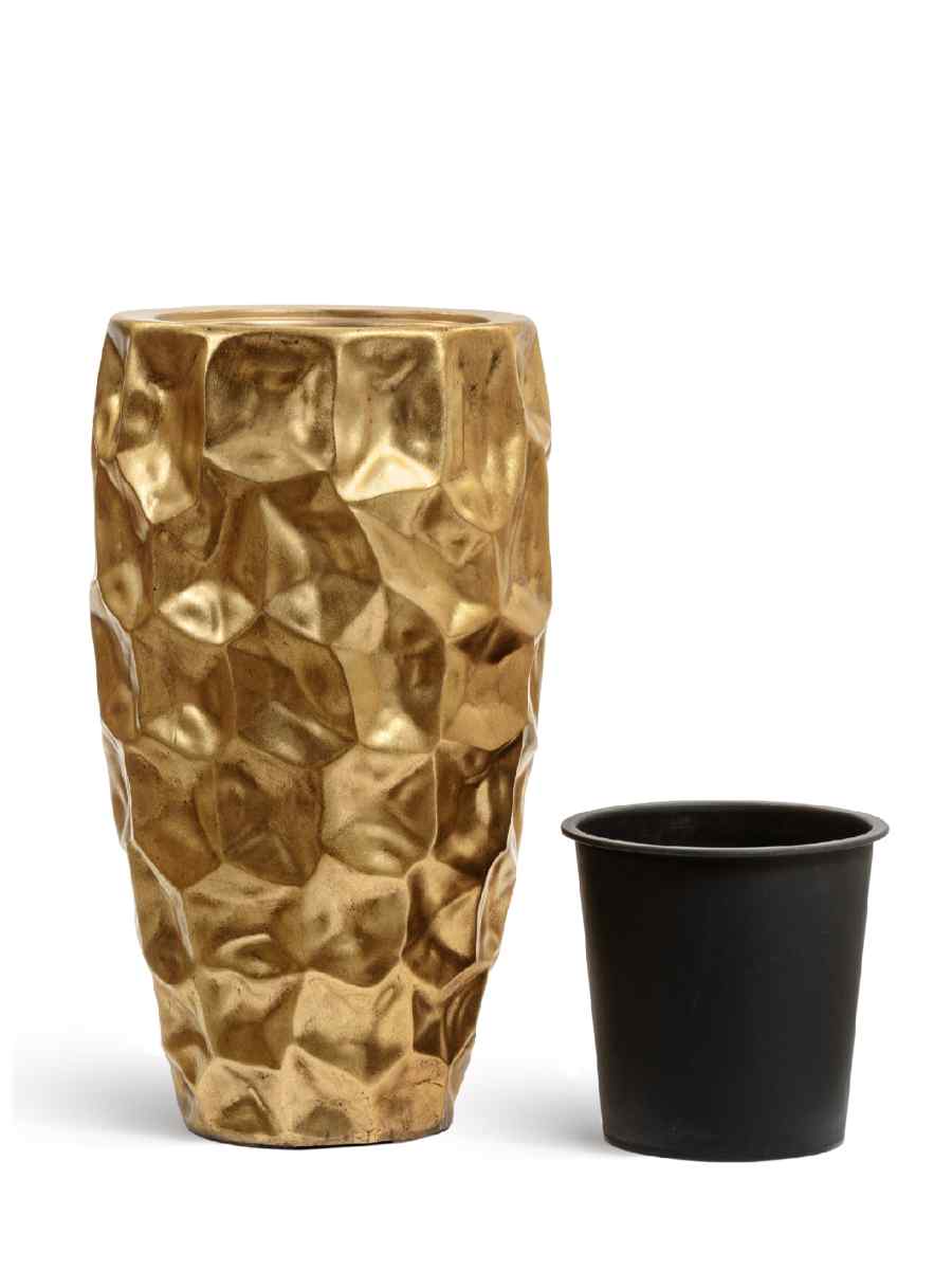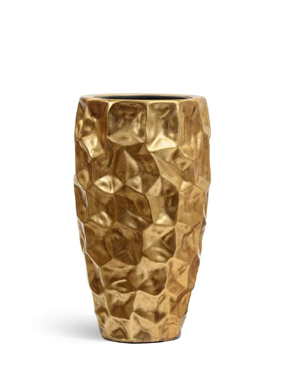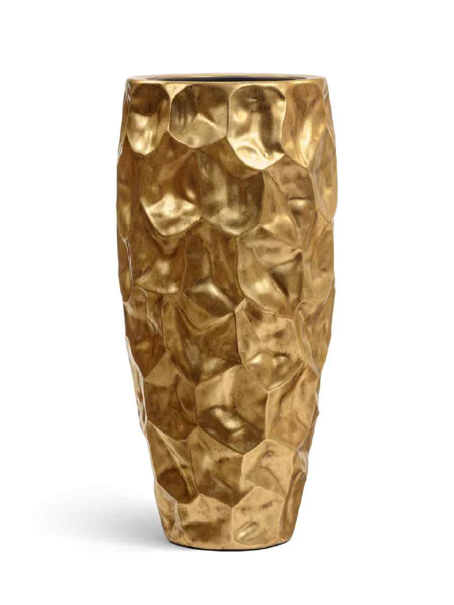 Кашпо напольное для цветов, TREEZ Effectory Metal, конус, керамический горшок, сусальное золото, 90×42 см, 105/12,5 л, для интерьера