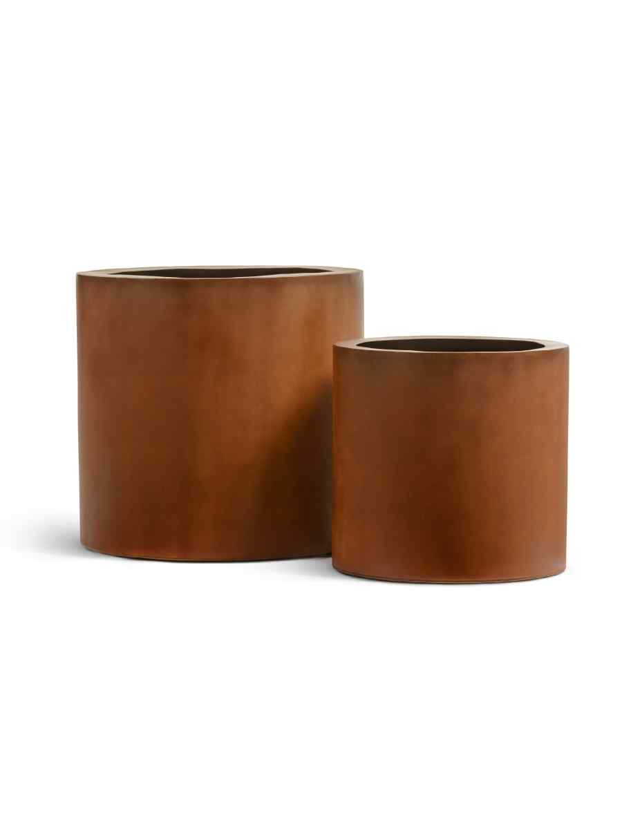 Кашпо напольное для цветов, TREEZ Effectory Corten Steel, цилиндр, керамический горшок, бархатистая окись, 39×41 см, 49 л, для интерьера, для улицы