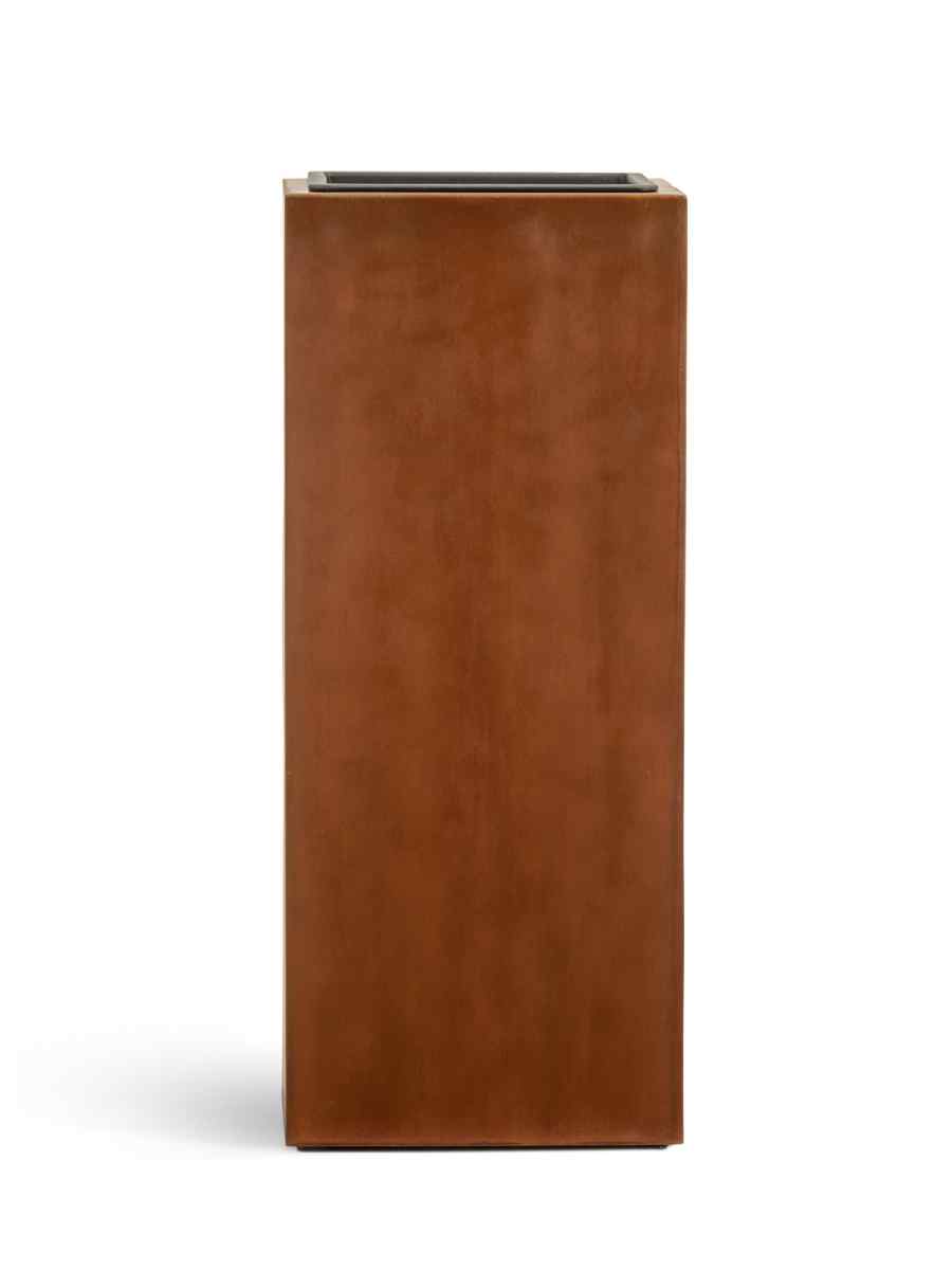 Кашпо напольное для цветов, TREEZ Effectory Corten Steel, куб, керамический горшок, бархатистая окись, 72×30 см, 64/8,5 л, для интерьера, для улицы