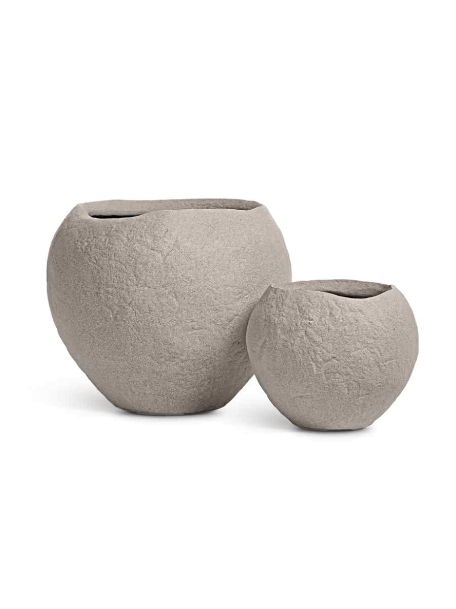 Кашпо напольное для цветов, TREEZ ERGO Hard Rock, сфера, керамический горшок, Песок серый беж, 45×53 см, 80 л, для интерьера, для улицы