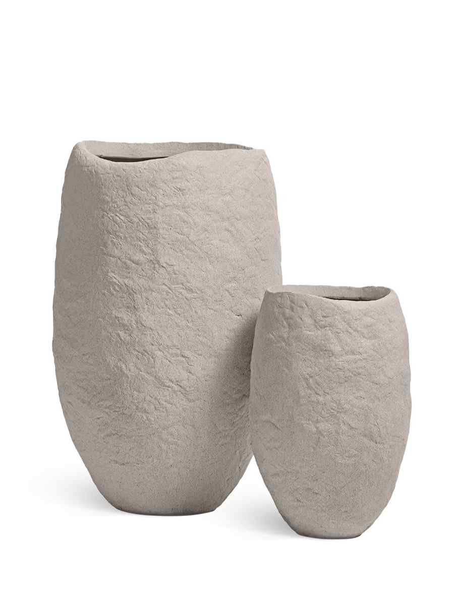 Кашпо напольное для цветов, TREEZ ERGO Hard Rock, цилиндр, керамический горшок, Песок серый беж, 68×65 см, 218 л, для интерьера, для улицы