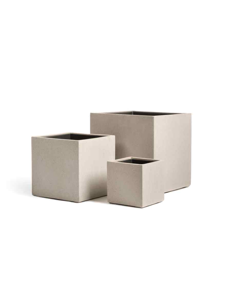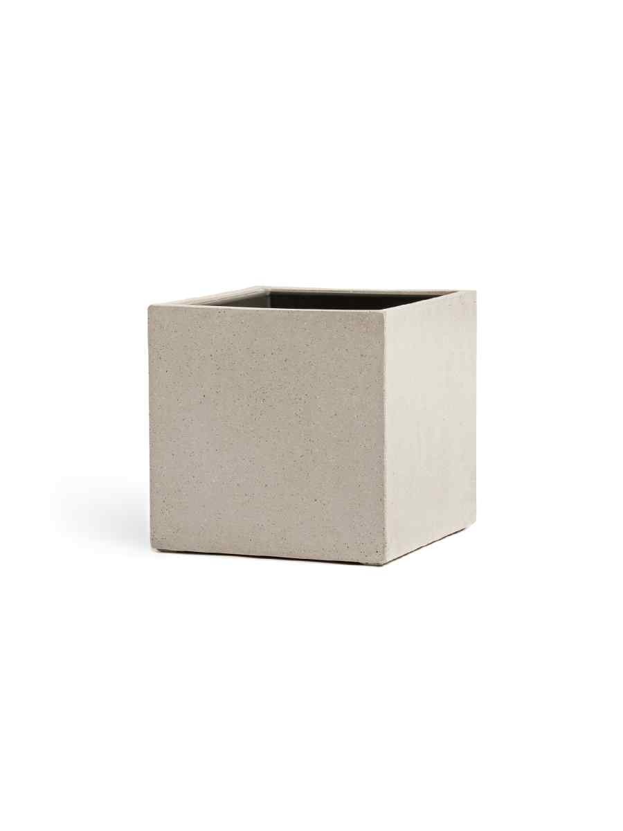 Кашпо напольное для цветов, TREEZ Effectory Beton, Куб, керамический горшок, Белый песок, 40×40 см, 64 л, для интерьера, для улицы