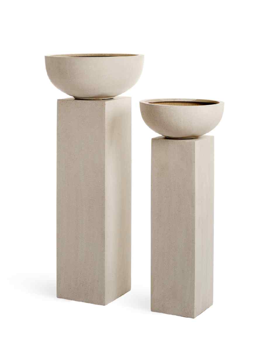Кашпо напольное для цветов, TREEZ Effectory Beton, Колонна, керамический горшок, Белый песок, 120×34 см