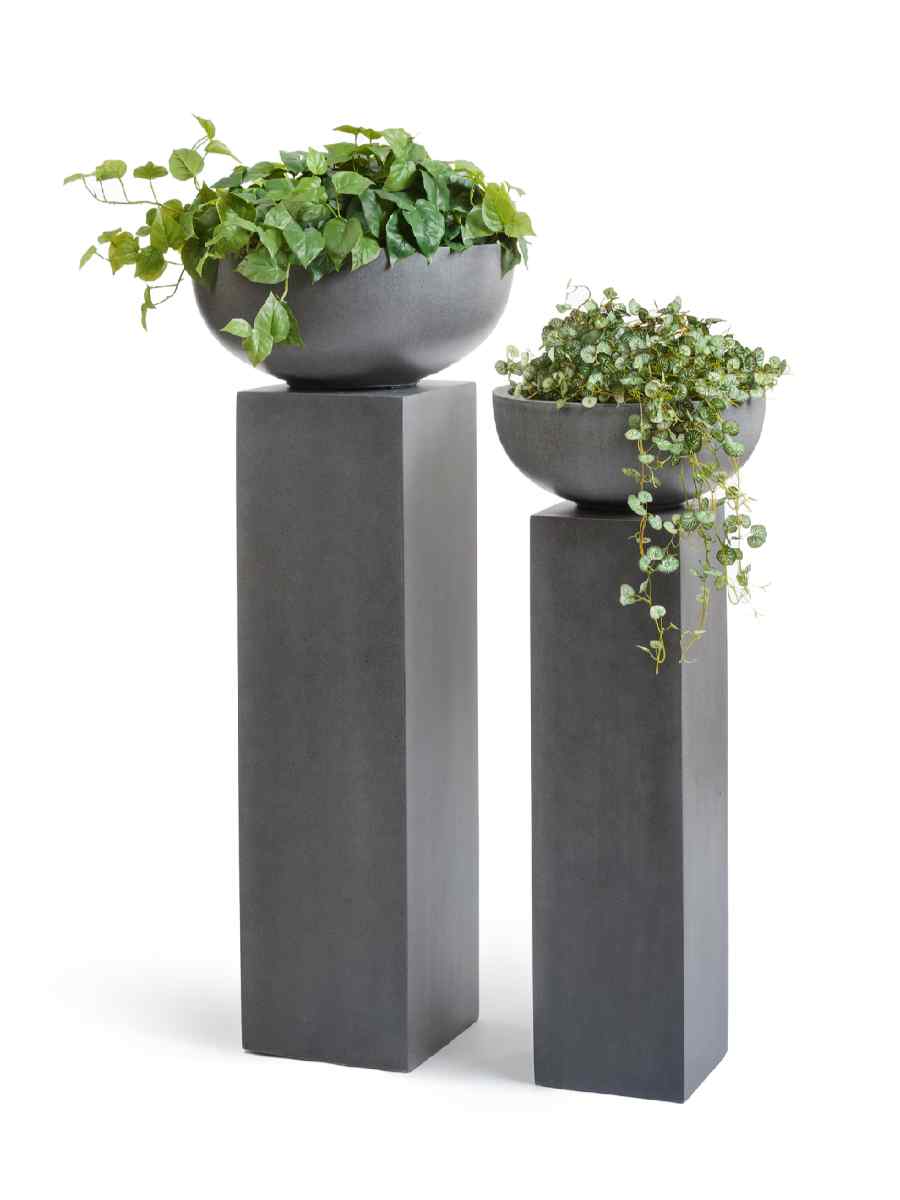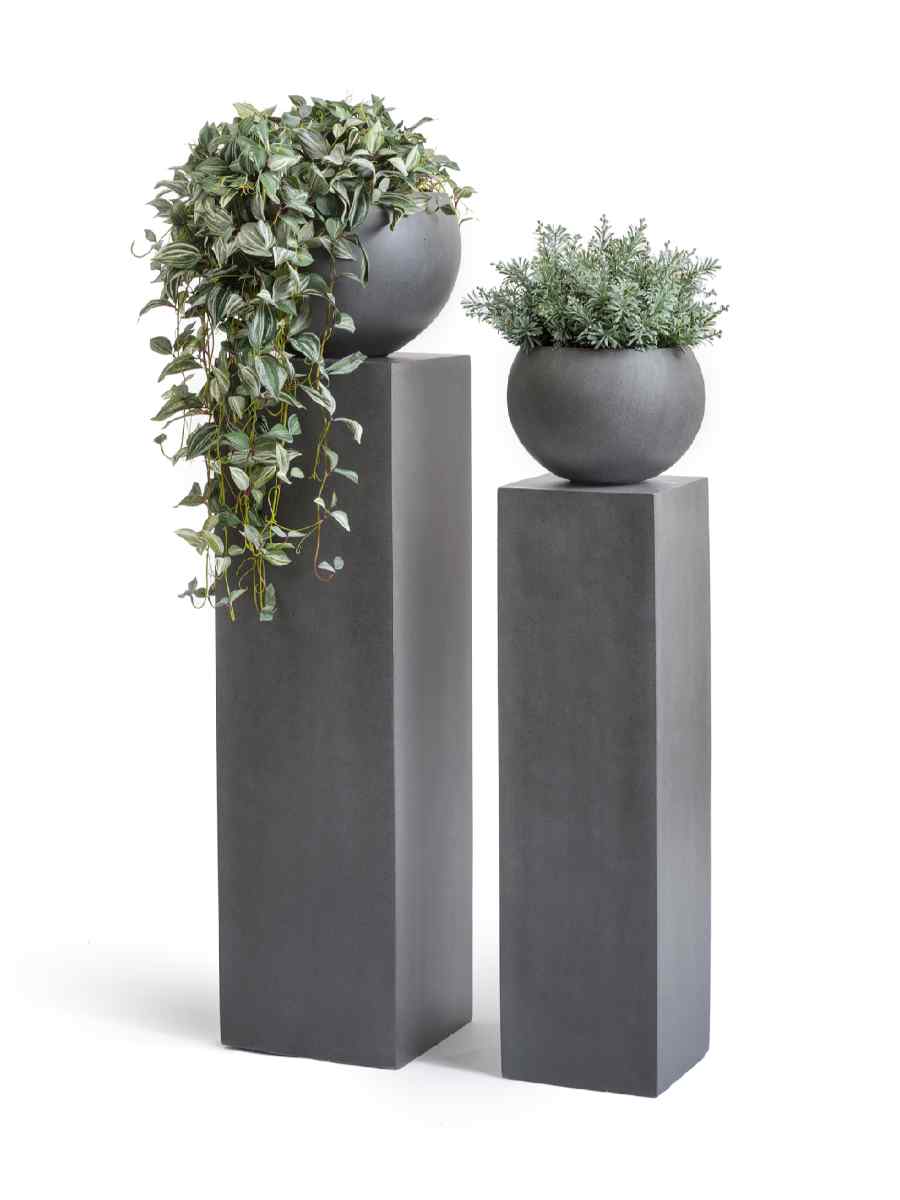 Элегантная форма колонны и глубокий тёмно-серый цвет делают этот горшок для цветов универсальным элементом декора. Он гармонично впишется как в минималистичный интерьер, так и в более классические или индустриальные пространства. Поверхность кашпо напоминает натуральный бетон, что придаёт изделию солидность и современный характер.