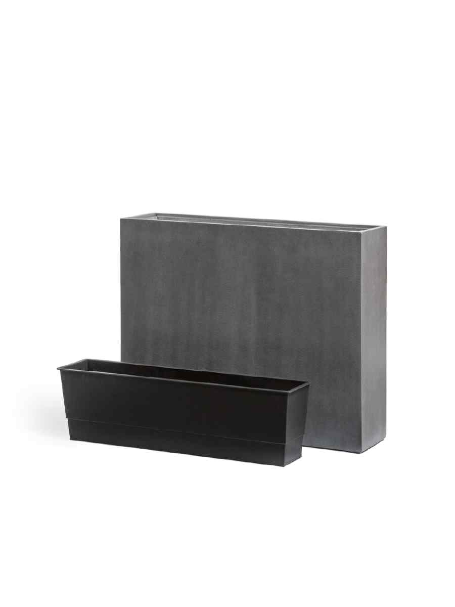 Элегантный тёмно-серый оттенок бетона придаёт изделию минималистичный и благородный вид. Высокая форма «Дивайдер» позволяет создавать выразительные композиции с крупными растениями или использовать кашпо как стильный элемент зонирования пространства. Благодаря объёму 172 литра и внушительным размерам 75×92 см, горшок подходит для посадки декоративных деревьев, кустарников или пышных цветочных композиций.