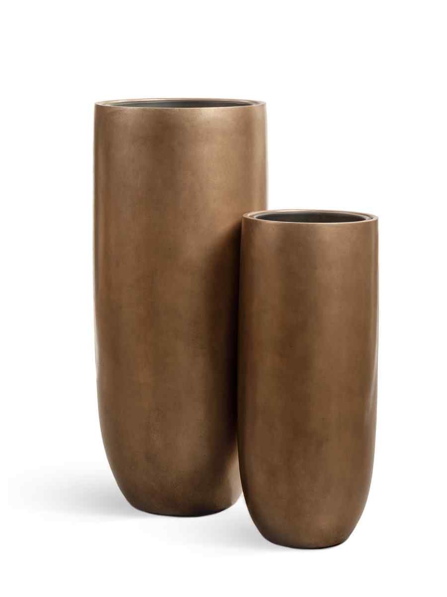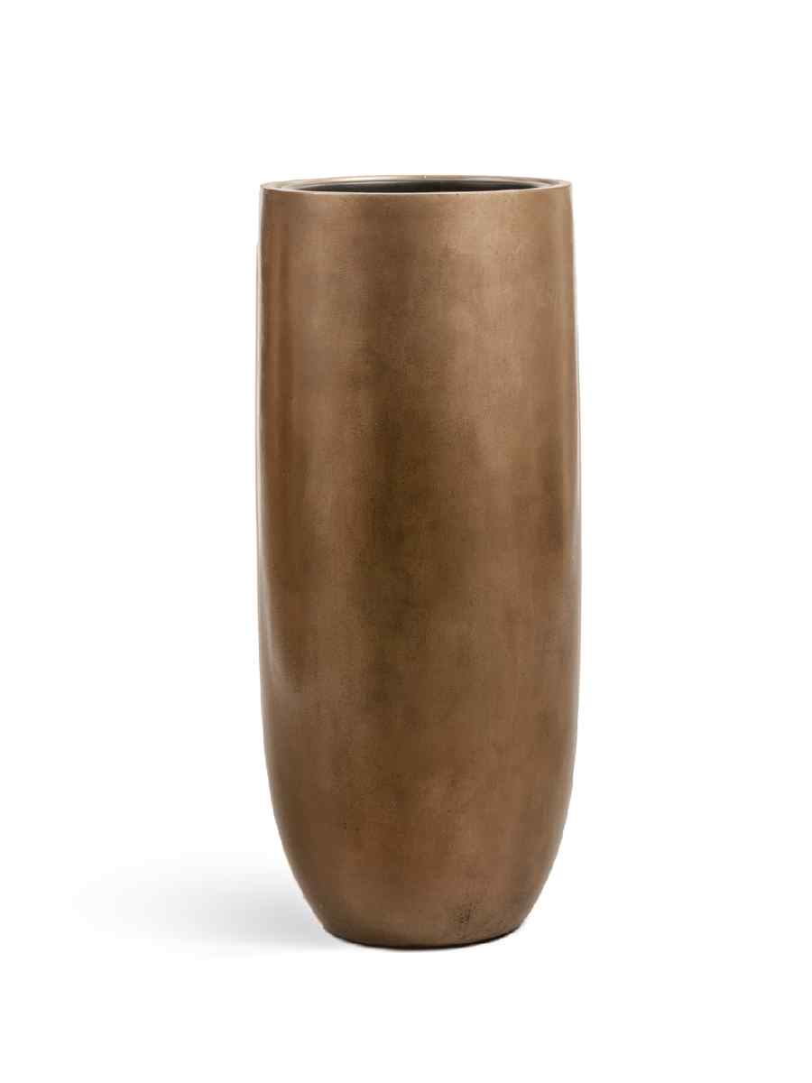 Кашпо напольное для цветов, TREEZ Effectory Metal, конус, керамический горшок, тёмное золото, 95×39 см, 102/18,5 л, для интерьера, для улицы