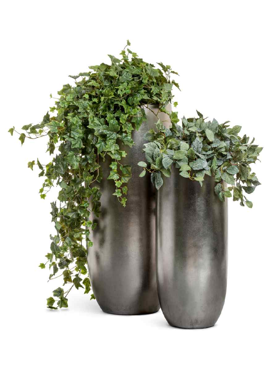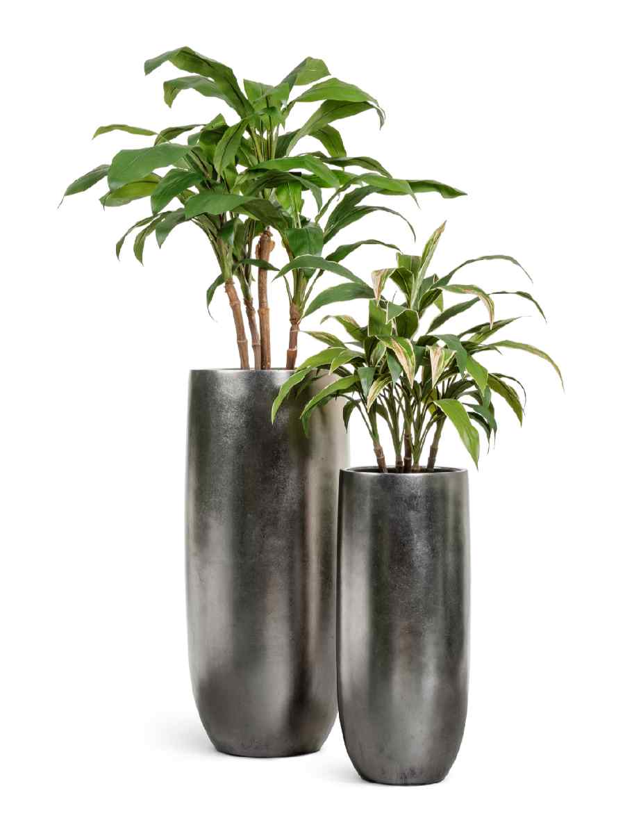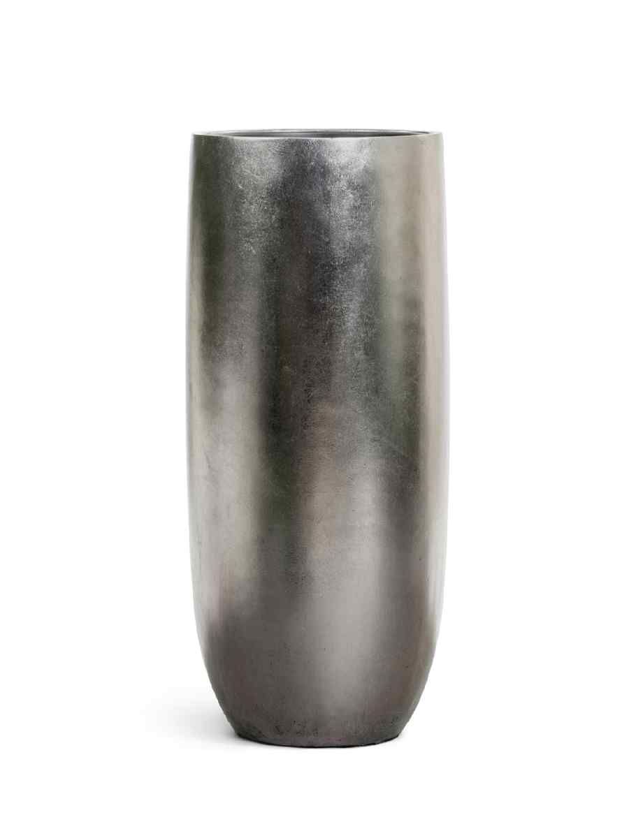 Элегантная форма конуса в сочетании с оттенком «стальное серебро» придает изделию утончённый вид. Такой керамический горшок для цветов станет не просто функциональным аксессуаром, а настоящим элементом декора. Поверхность кашпо имитирует металл и смотрится дорого и эффектно, создавая акцент в пространстве.