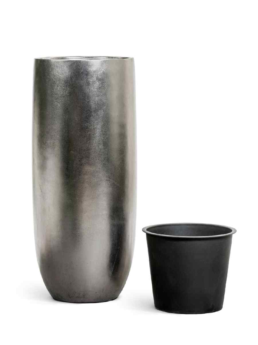 Кашпо напольное для цветов, TREEZ Effectory Metal, конус, керамический горшок, стальное серебро, 30×32 см, 102/18,5 л, для интерьера