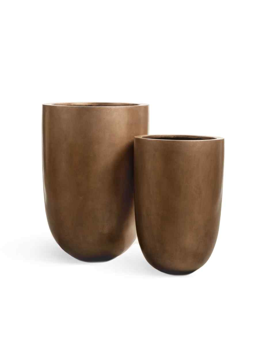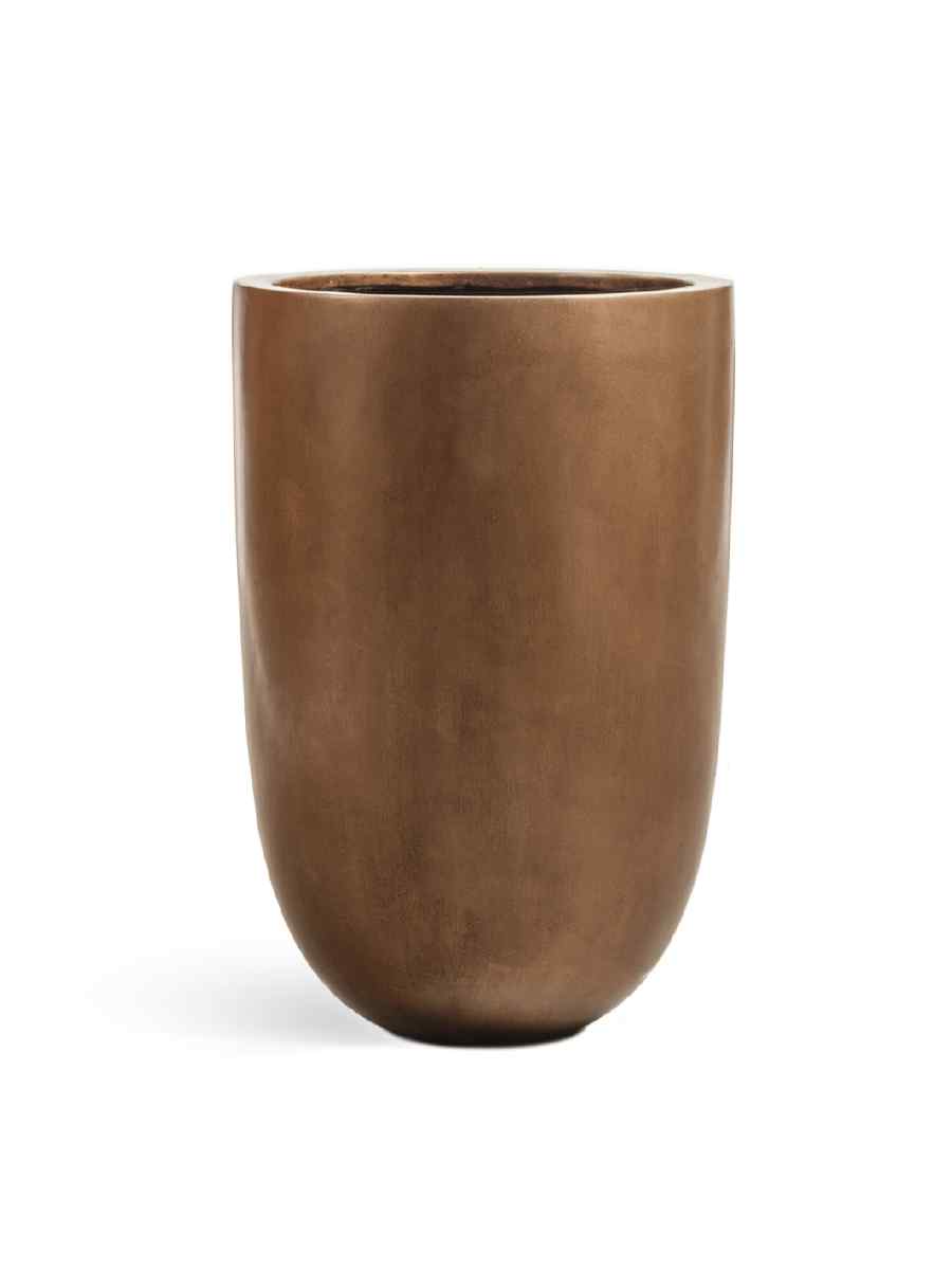 Кашпо выполнено в форме элегантной чаши с глубоким объёмом — целых 96 литров. Его поверхность окрашена в изысканный оттенок тёмного матового золота, что придаёт интерьеру благородство и утончённость. Такой керамический горшок для цветов легко вписывается в современные дизайнерские решения: от минимализма до классики.