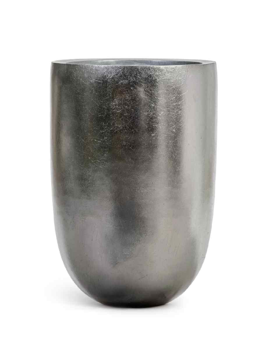 Кашпо напольное для цветов, TREEZ Effectory Metal, чаша, керамический горшок, Стальное серебро, 67×46 см, 96 л, для интерьера