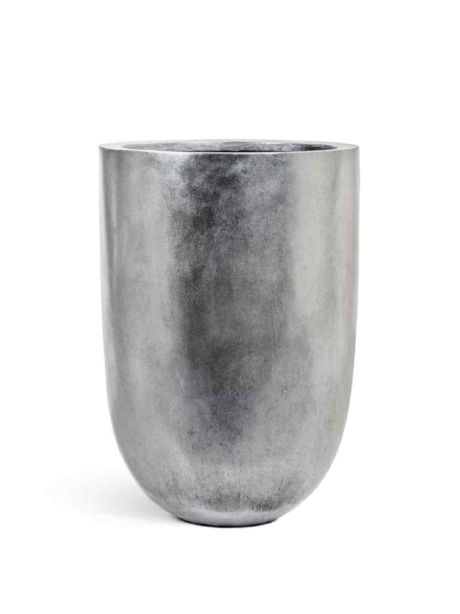 Кашпо напольное для цветов, TREEZ Effectory Metal, чаша, керамический горшок, серебро, 67×46 см, 96 л, для интерьера