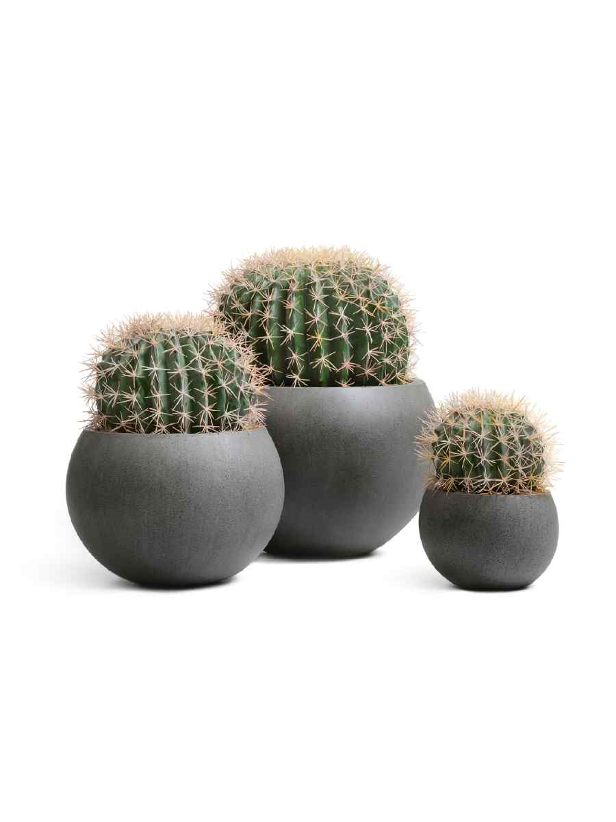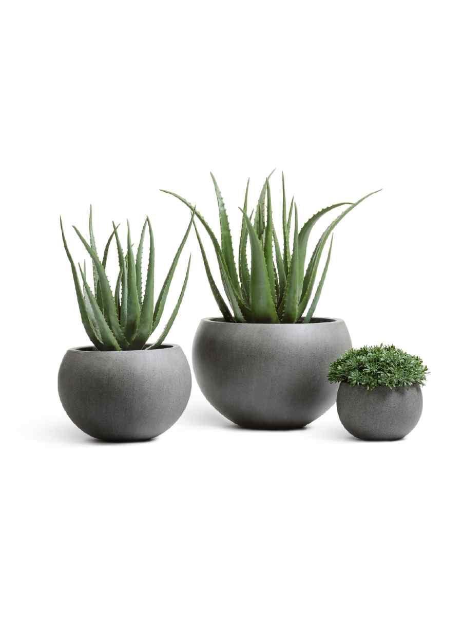 Кашпо выполнено из прочного керамического материала с эффектом тёмно-серого бетона. Его минималистичный внешний вид органично сочетается как с современными интерьерами, так и с более классическими стилями. Матовая поверхность придаёт изделию естественность и делает его универсальным элементом декора.