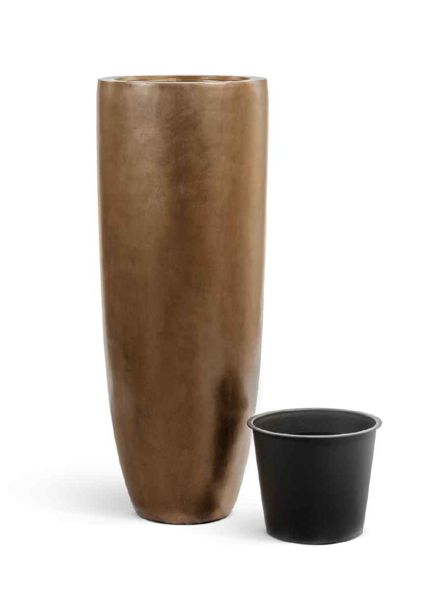 Кашпо напольное для цветов, TREEZ Effectory Metal, конус, керамический горшок, тёмное матовое золото, 120×46 см, 170/18,5 л, для интерьера