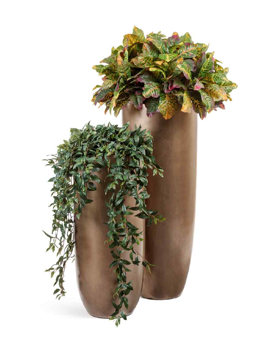 В основе конструкции — прочный керамический горшок, который отличается высокой устойчивостью к перепадам температур и механическим воздействиям. Благодаря качественным материалам изделие не трескается со временем и сохраняет свой внешний вид даже при активной эксплуатации. Металлизированная поверхность с матовым блеском добавляет интерьеру утончённости и современного шарма.