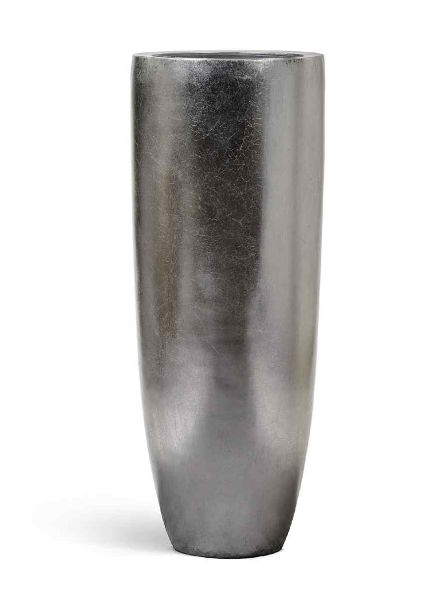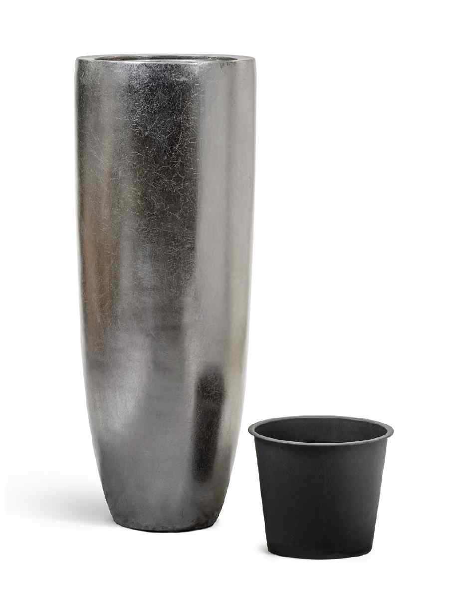 Кашпо напольное для цветов, TREEZ Effectory Metal, конус, керамический горшок, стальное серебро, 120×46 см, 170/18,5 л, для интерьера