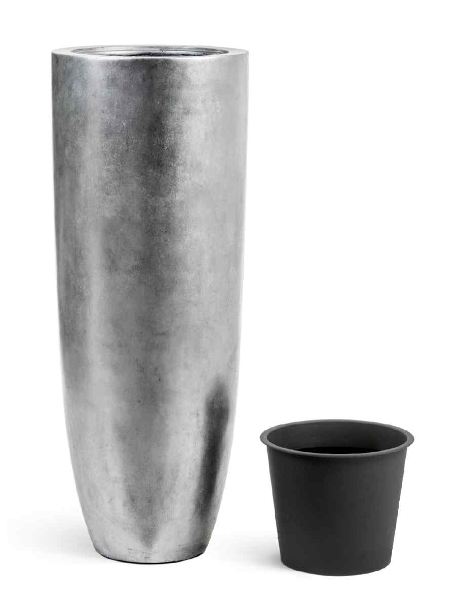 Кашпо напольное для цветов, TREEZ Effectory Metal, конус, керамический горшок, серебряный, 120×46 см, 170/18,5 л, для интерьера