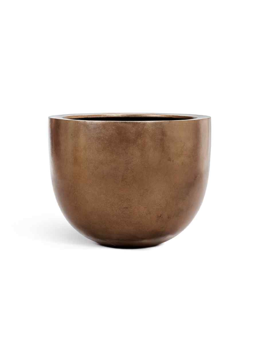 Кашпо напольное для цветов, TREEZ Effectory Metal, чаша, керамический горшок, тёмное матовое золото, 48×60 см, 120 л, для интерьера, для улицы