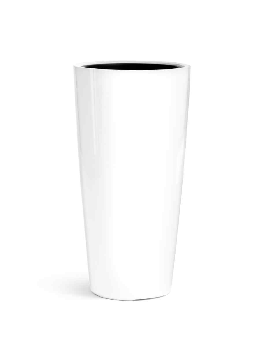 Кашпо напольное для цветов, TREEZ Effectory Gloss, высокий конус, керамический горшок, Белый глянцевый лак, 45×23 см, 12л/4л, для интерьера, для улицы
