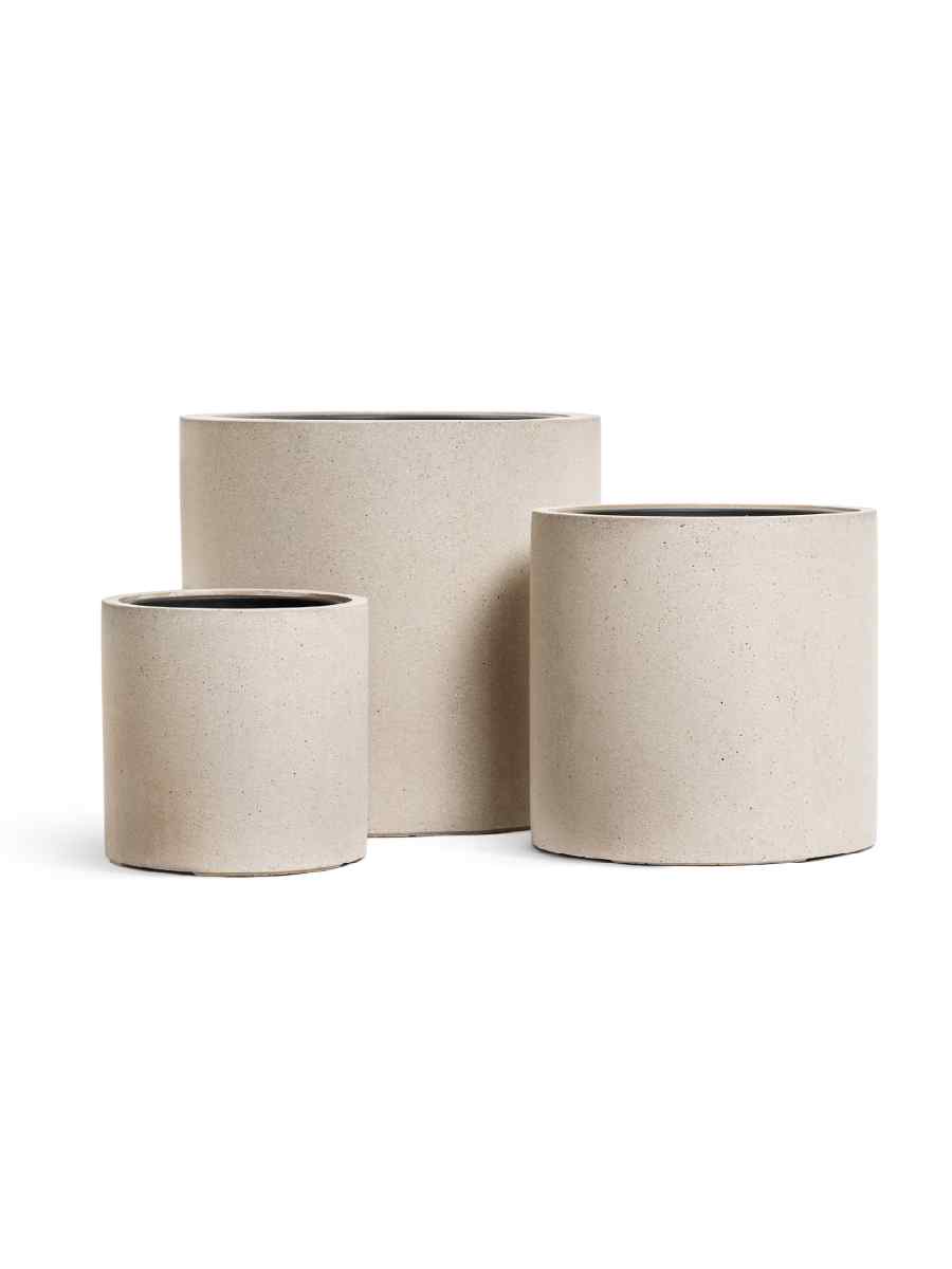 Кашпо напольное для цветов, TREEZ ERGO Hard Rock, цилиндр, керамический горшок, Песок серый беж, 31×33 см, 24 л, для интерьера, для улицы