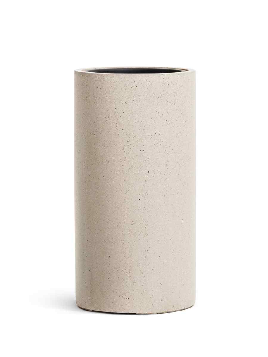 Кашпо напольное для цветов, TREEZ ERGO Hard Rock, цилиндр, керамический горшок, Песок серый беж, 31×33 см, 24 л, для интерьера, для улицы