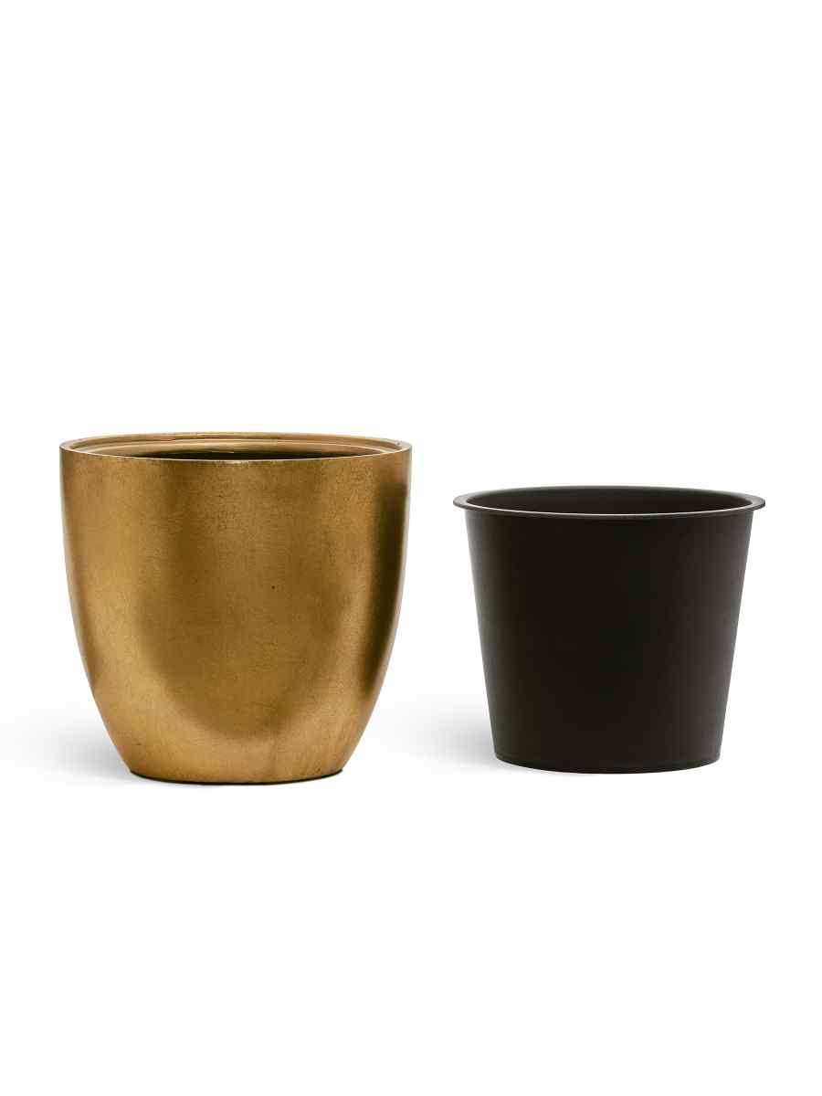 Кашпо напольное для цветов, TREEZ Effectory Metal, конус, керамический горшок, сусальное золото, 28×30 см, 35/18,5 л, для интерьера, для улицы