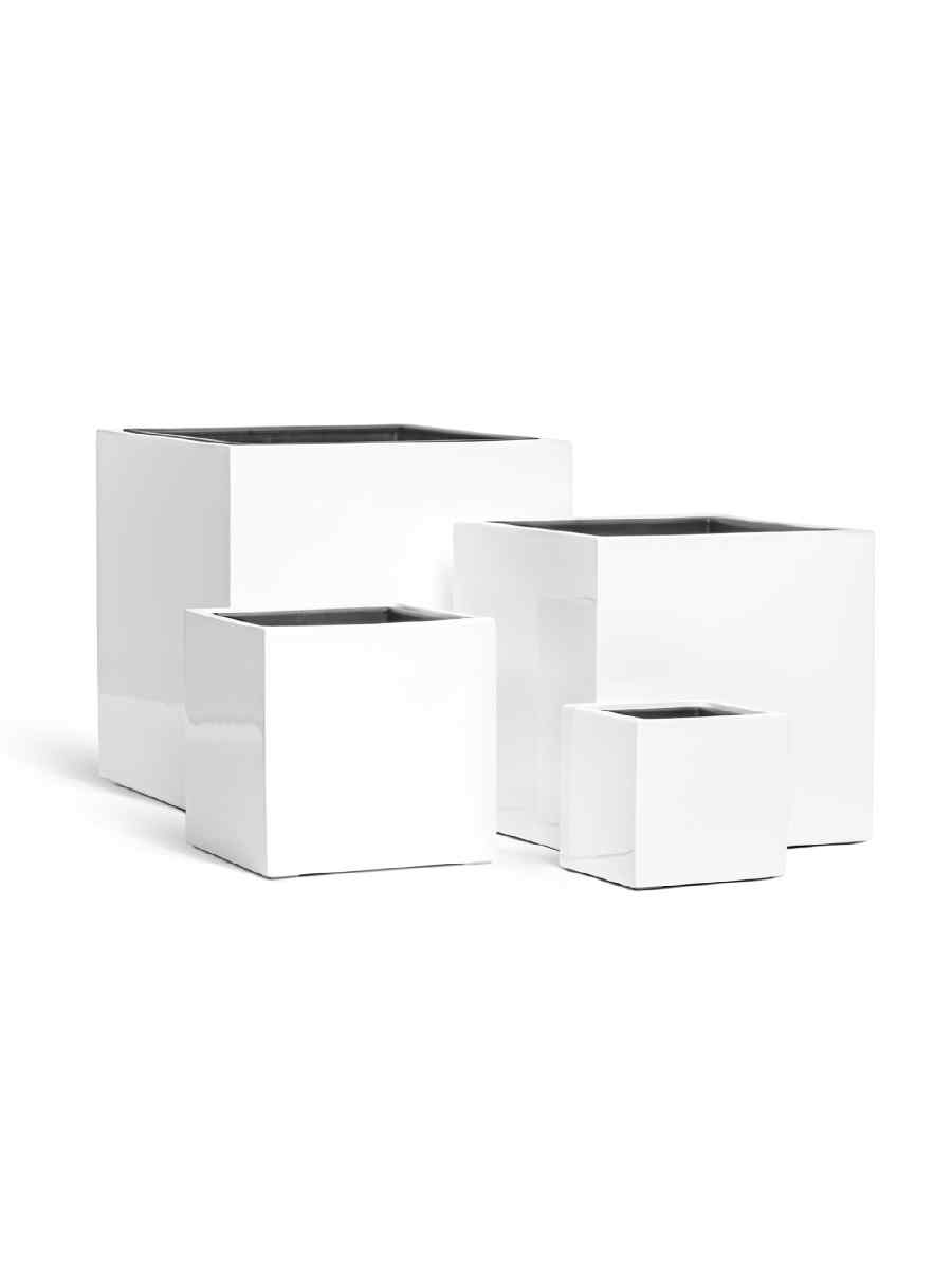 Кашпо напольное для цветов, TREEZ Effectory Gloss, Куб, керамический горшок, Белый гланцевый лак, 20×20 см, 8л/1.5л л, для интерьера, для улицы