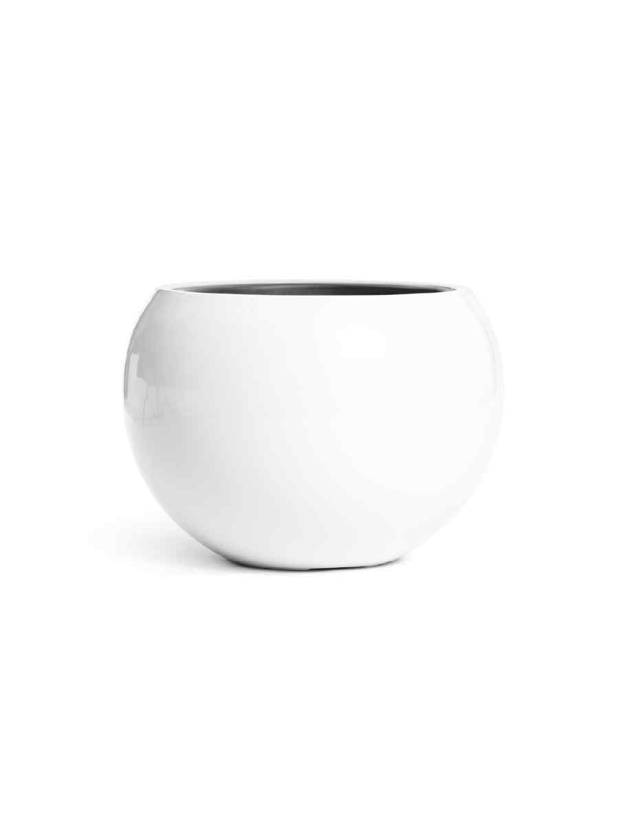 Кашпо напольное для цветов, TREEZ Effectory Gloss, Полусфера, керамический горшок, Белый гланцевый лак, 32×40 см, 24л/12.5л л, для интерьера, для улицы