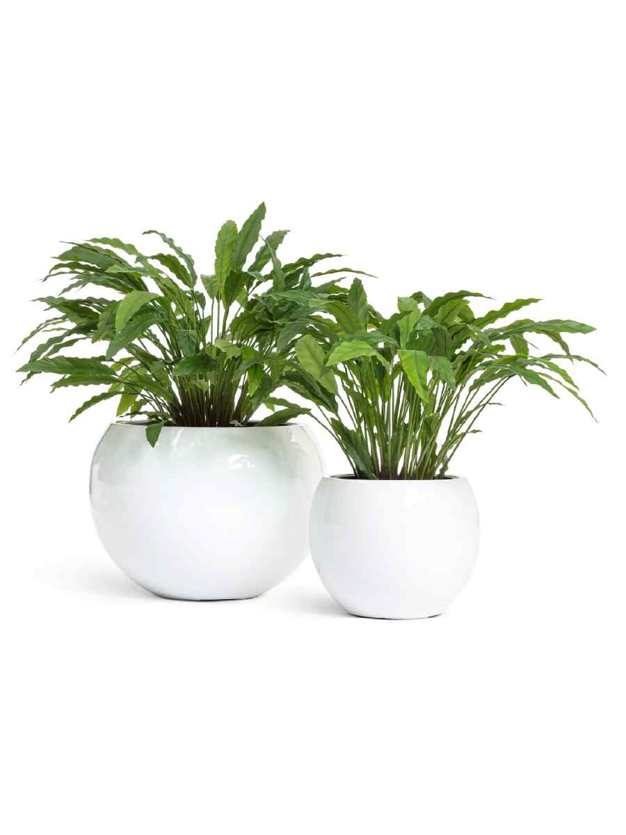 Изысканное кашпо напольное TREEZ Effectory Gloss в форме полусферы — это стильный и практичный элемент декора, который подчеркнёт красоту растений и гармонично впишется в любое пространство. Его современный дизайн с белым глянцевым покрытием делает его универсальным решением для дома и коммерческих интерьеров.