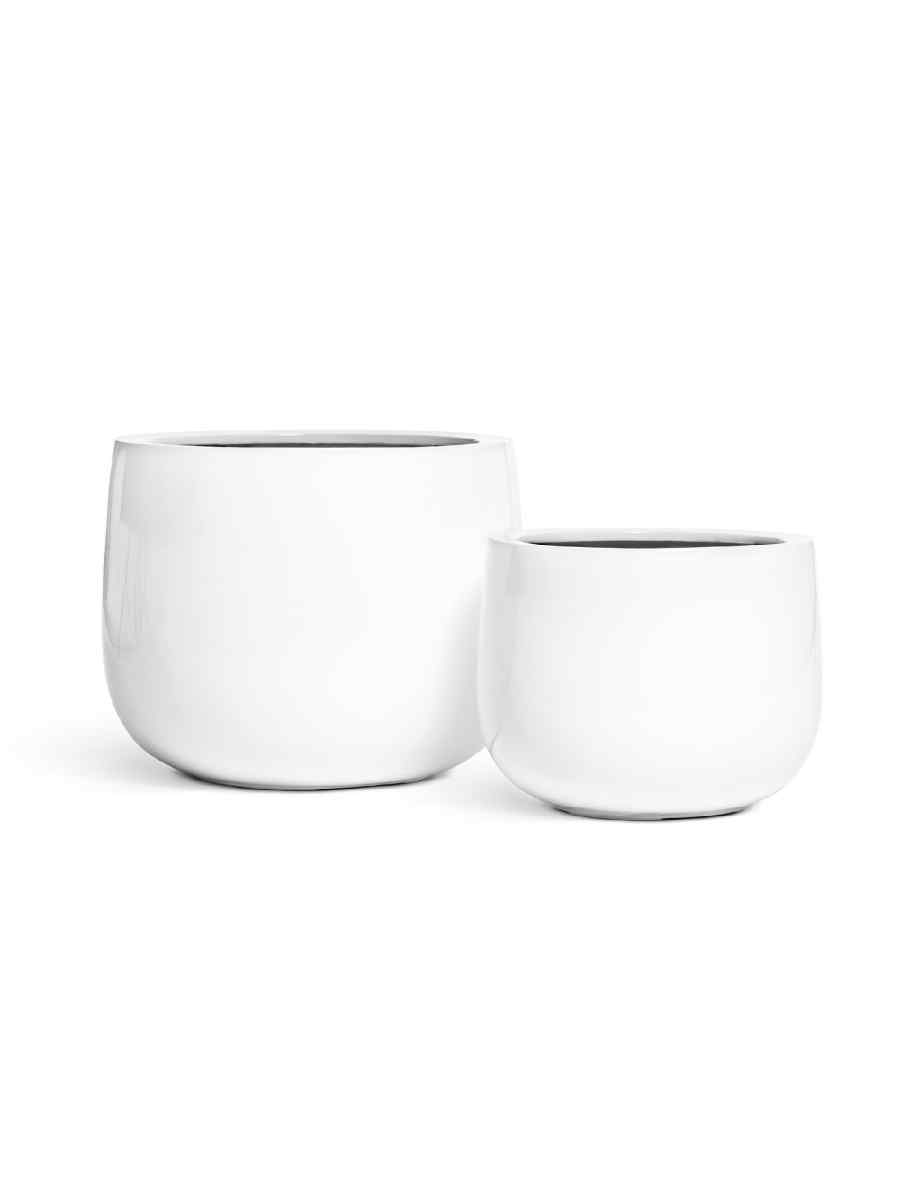 Кашпо напольное для цветов, TREEZ Effectory Gloss, Чаша, керамический горшок, Белый гланцевый лак, 30×37 см, 28 л, для интерьера, для улицы