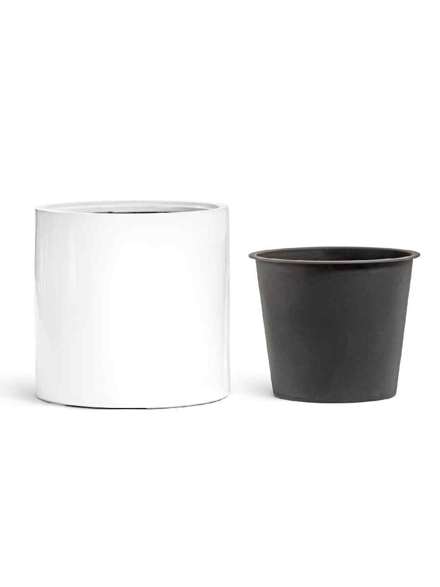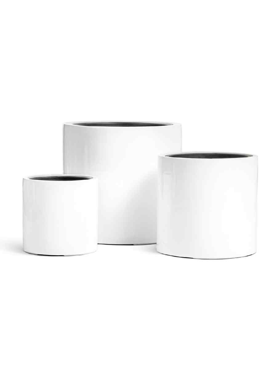 Кашпо напольное для цветов, TREEZ Effectory Gloss, Цилиндр, керамический горшок, Белый гланцевый лак, 31×31 см, 20л/7л л, для интерьера, для улицы