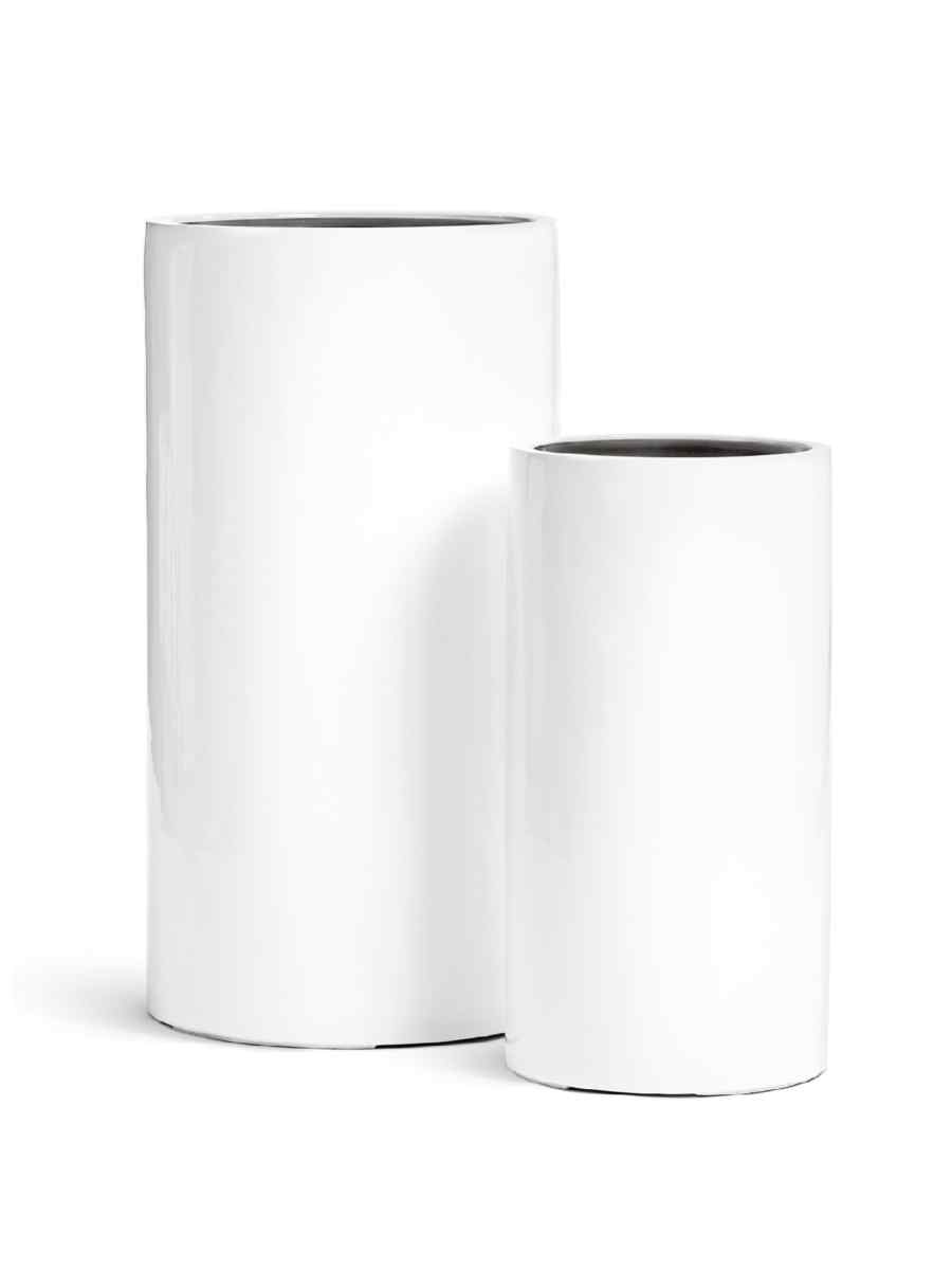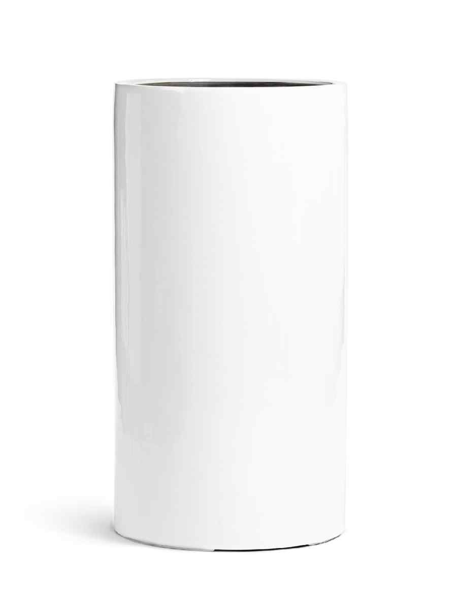 Кашпо напольное для цветов, TREEZ Effectory Gloss, Цилиндр высокий, керамический горшок, Белый глянцевый лак, 60×31 см, 37л/10л, для интерьера, для улицы
