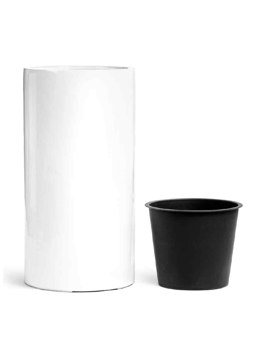 Кашпо напольное для цветов, TREEZ Effectory Gloss, Цилиндр высокий, керамический горшок, Белый гланцевый лак, 60×31 см, 37л/10л л, для интерьера, для улицы