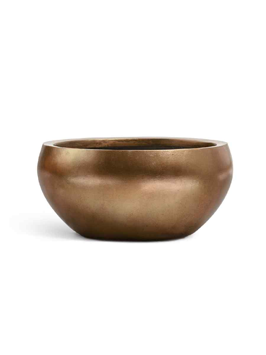 Сферическая форма и глубокий оттенок тёмного матового золота придают кашпо особый шарм. Такой керамический горшок для цветов выглядит дорого и утончённо, создавая атмосферу уюта и статуса. Его лаконичный дизайн легко сочетается как с классическим стилем оформления помещений, так и с современными минималистичными интерьерами.