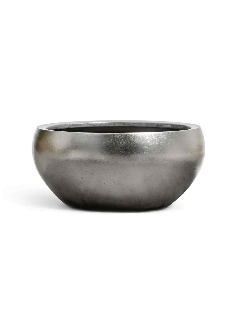 Кашпо напольное для цветов, TREEZ Effectory Metal, сфера, керамический горшок, Стальное серебро, 24×50 см, 42 л, для интерьера, для улицы