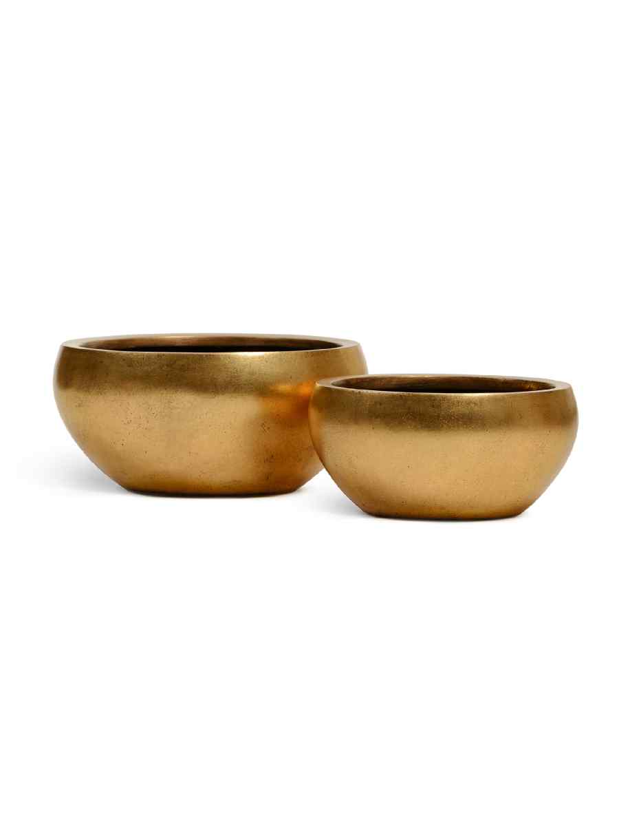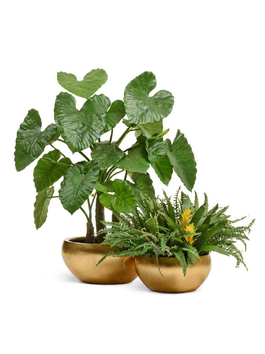 - Эстетичный дизайн с золотым покрытием делает кашпо выразительным акцентом любого пространства.