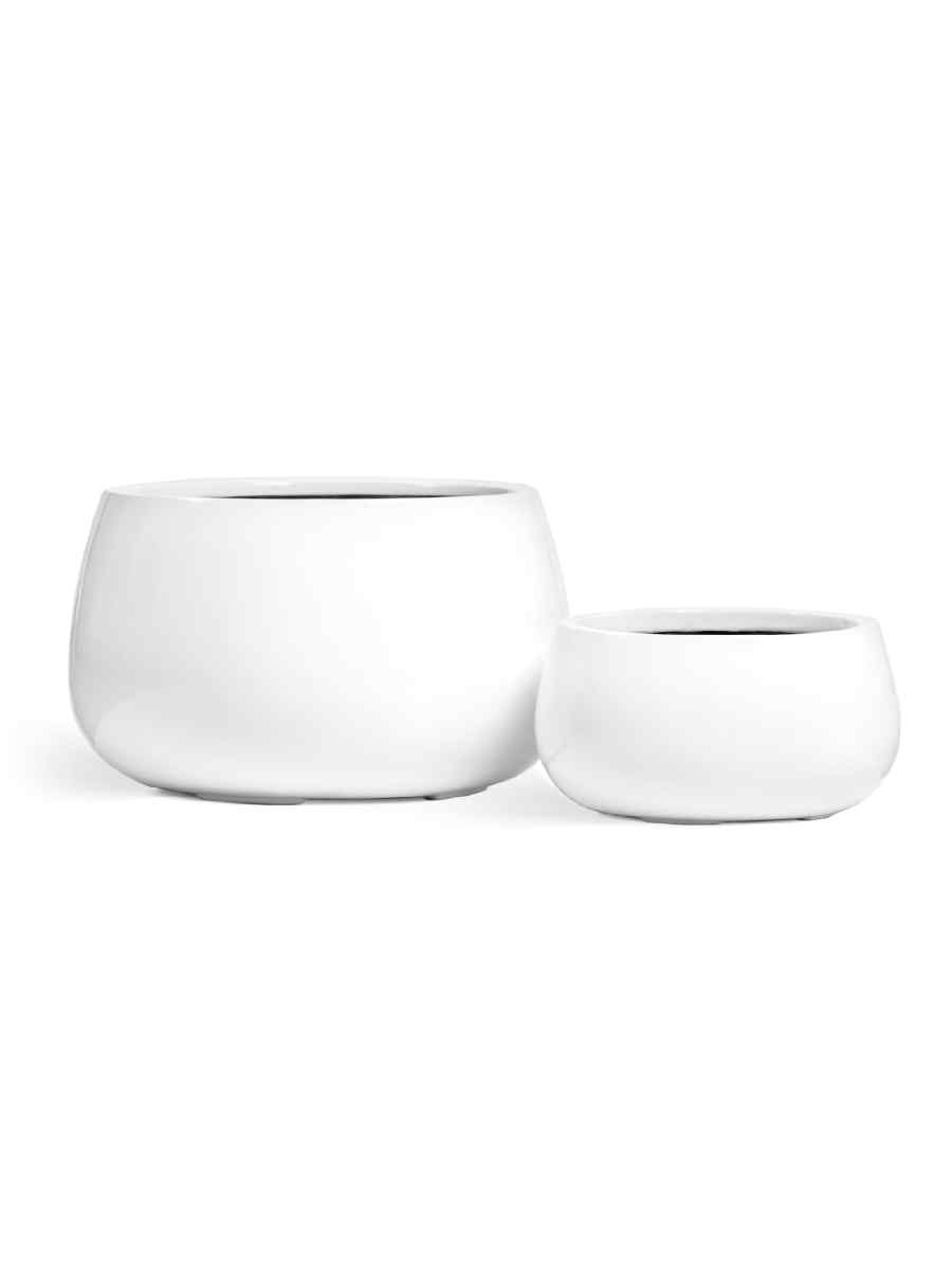 Керамический горшок для цветов выполнен в форме чаши с изящными пропорциями. Гладкая поверхность с глянцевым блеском выглядит дорого и аккуратно, а универсальный белый цвет создаёт ощущение чистоты и лёгкости. Такое кашпо станет не просто ёмкостью для растения, а полноценным элементом декора.
