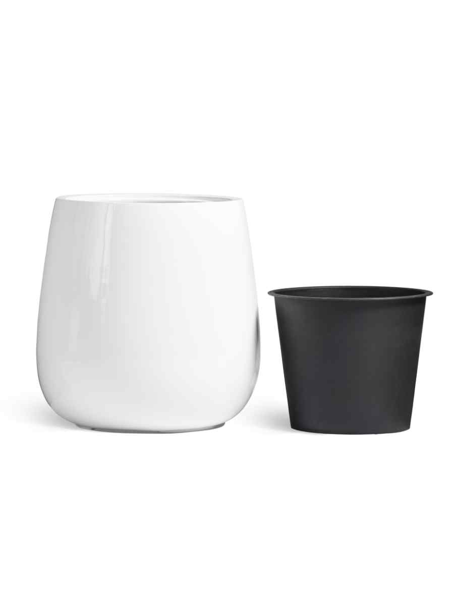 Кашпо выполнено из прочной керамики и покрыто белым глянцевым лаком. Такое сочетание дарит изделию благородный внешний вид и делает его уместным как в классическом интерьере, так и в минималистичном современном пространстве. Гладкая поверхность отражает свет и визуально освежает помещение или террасу. Форма чаши подчеркивает естественную красоту растений и позволяет создать гармоничные композиции.
