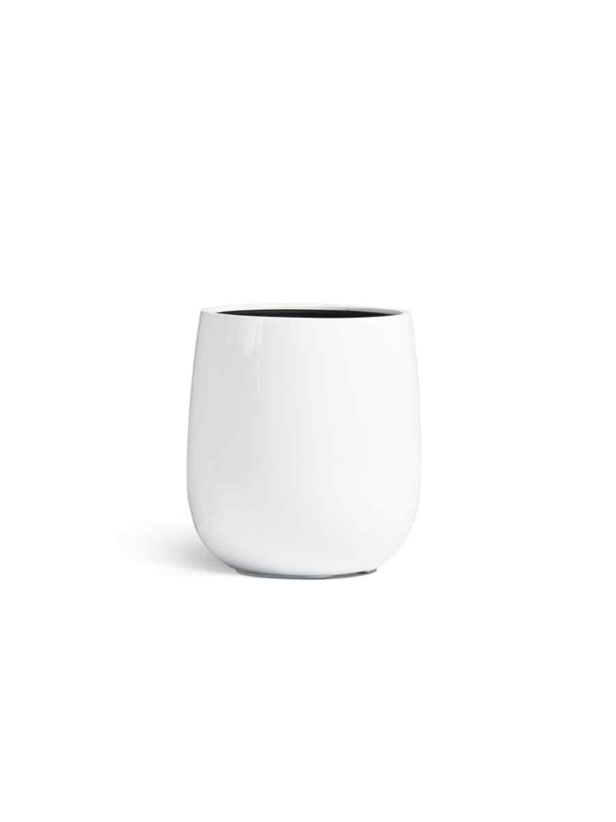 Кашпо напольное для цветов, TREEZ Effectory Gloss, Чаша, керамический горшок, Белый глянцевый лак, 35×32 см, 18л/7л л, для интерьера, для улицы