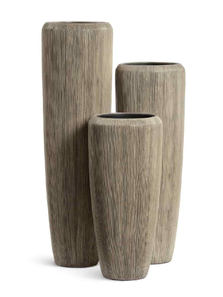 Кашпо напольное для цветов, TREEZ ERGO Hard Rock, цилиндр, керамический горшок, Песок серый беж, 61×41 см, 76 л, для интерьера, для улицы